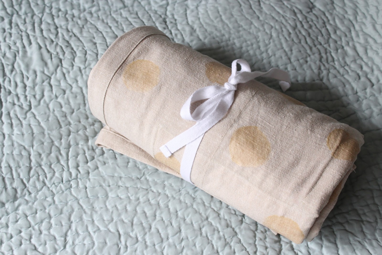 I opened up the top hem of the pouch and added a ribbon, turning it into a drawstring bag to hold all the supplies.
